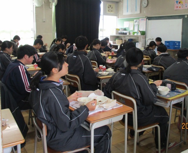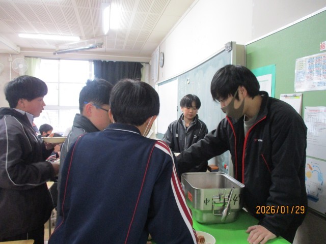 本日の献立は「麦ごはん、牛乳、キャベツ入り麻婆豆腐、揚げしゅうまい」です。「キャベツ入り麻婆豆腐」は学校給食応募献立で採用された献立です。