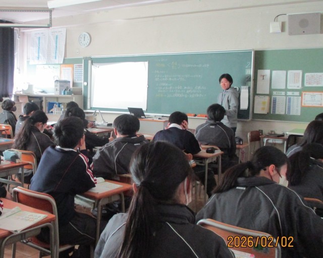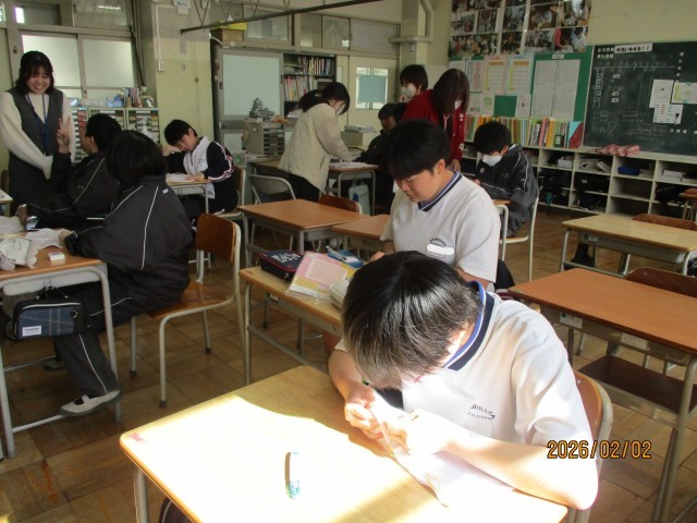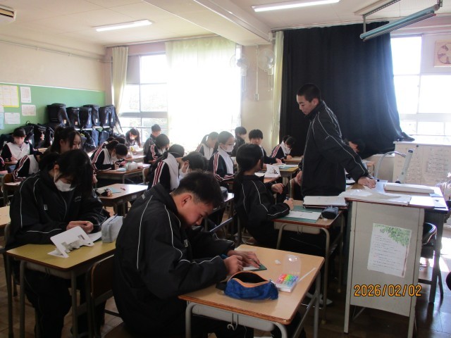 2年生の授業(国語)、ABCD組の授業(刺し子)、1年生の授業(美術・保健体育)の様子です。保健体育では「人との関わりと自分らしさ」について学んでいます。