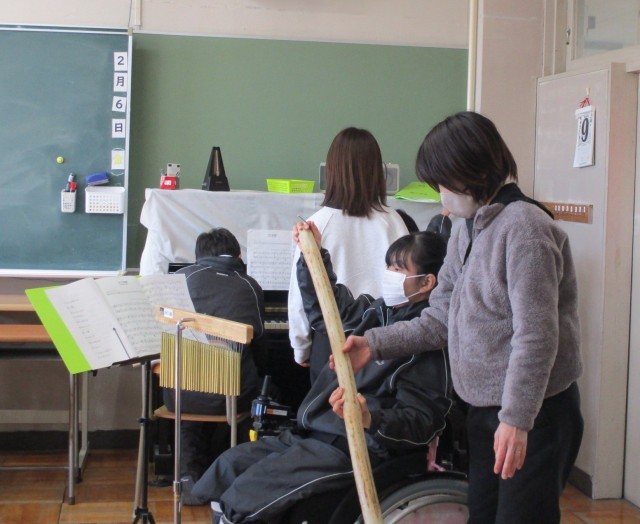 ABCD組の音楽の授業では、「小さな世界」を演奏しています。