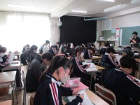 2年生の授業(英語・体育)とABCD組の音楽の授業です。英語では「世界遺産の魅力を紹介しよう」というテーマで、グループで協力しながら発表原稿を作成しています。
