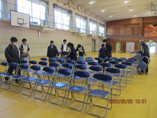 時間割の都合で3年生が準備をしました。当日きっと素晴らしい式になることでしょう。