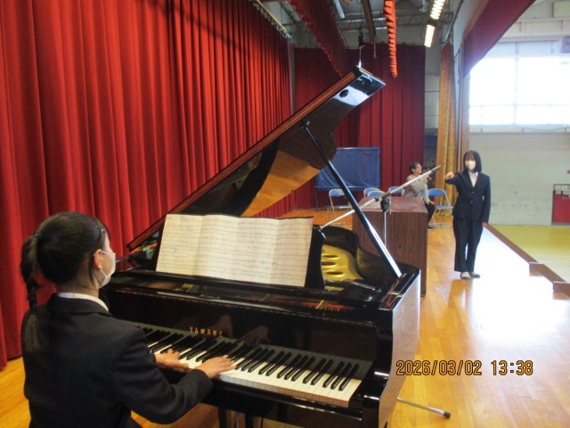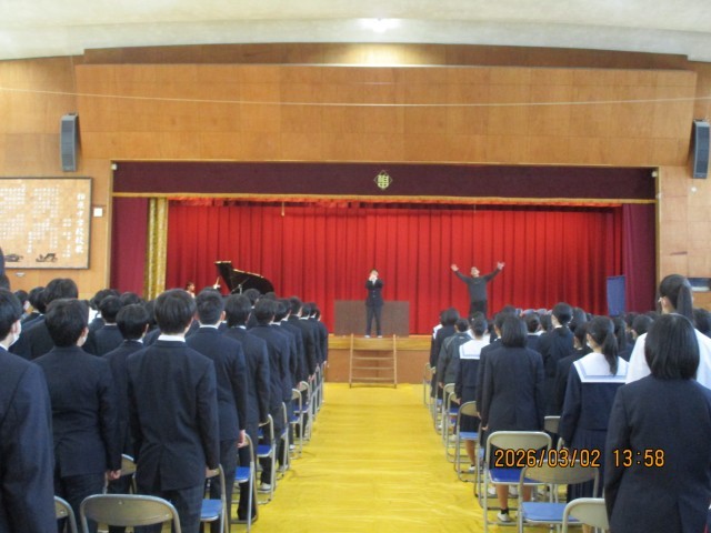 入退場の所作に加え、国歌、校歌、そして「旅立ちの日に」の合唱練習を行いました。
