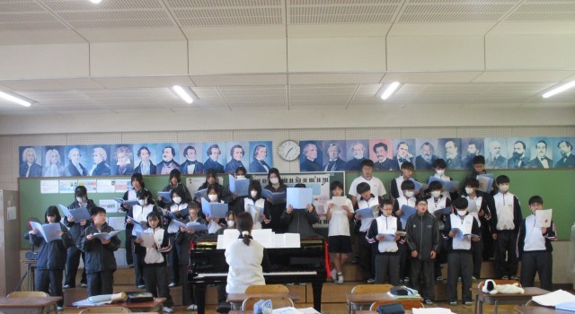 ABCD組の国語の授業と1年生の音楽の授業の様子です。