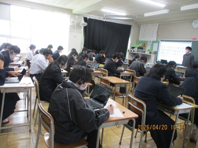 3年生は全国学力・学習状況調査(英語)に取り組んでいます。