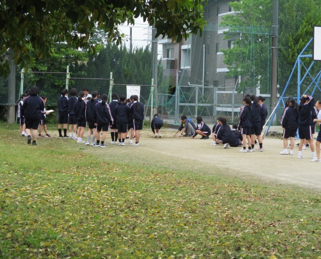 1年生の体力テストの様子です。一生懸命頑張っています。