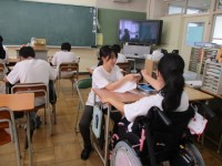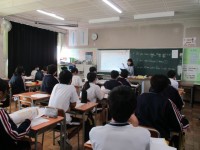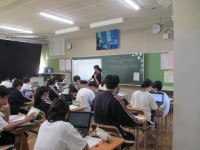 単元の終わりにパフォーマンス課題をすることが増えています。2年英語では、ALTに問われた質問に、英語で考えを伝えていました。また、1年社会では「人間はどのように進化してきたか」を、時代を比較しながら整理をし、自身の考えをまとめていました。