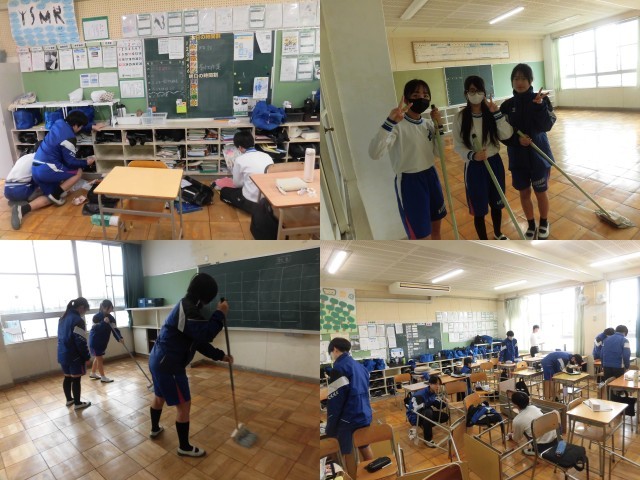 本日5時間目に体育館、6時間目に3階の教室、廊下、特別教室の奉仕作業を行いました。3年間お世話になった味美中学校に感謝の気持ちを込めて時間いっぱい一生懸命作業に打ち込んでいました。卒業まで残り9日です。来週は公立高校の一般入試が控えています。受検する人は体調管理に気をつけてください。