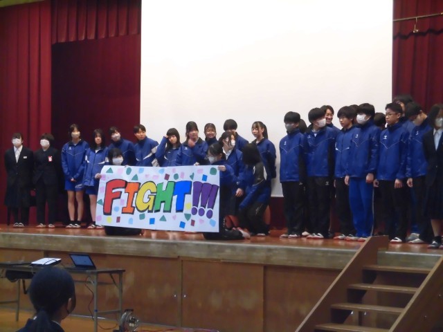 本日5時間目に生徒会による3年生を祝う会が行われました。1,2年生からの感謝のメッセージ紹介のあと、部活動ムービー、3年生から3年生へのメッセージを伝えるムービーが上映されお世話になった3年生へ感謝を伝えることができました。サプライズで3年生有志によるダンスも披露され会場は大いに盛り上がりました。最後に3年生代表生徒から感謝の言葉と仲間に向けて次のステージでも活躍しようという力強い言葉が述べられました。味美中らしいとてもあたたかな会になりました。