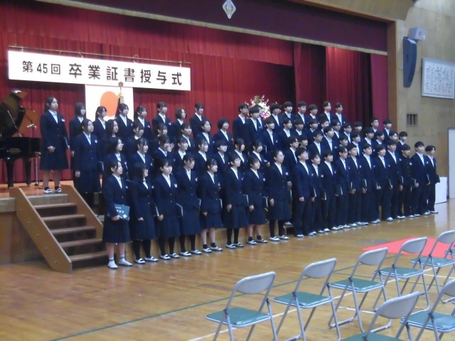 卒業生合唱では、涙を流しながらも、すばらしい歌声が体育館に響き渡りました。