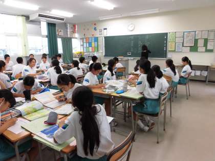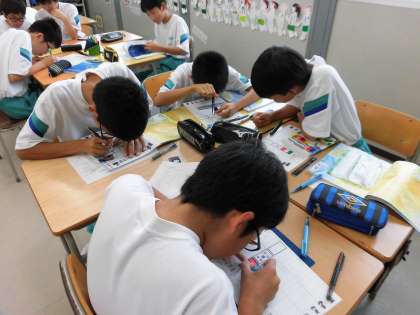 本日6限の学活は校外学習に向けて、各班でどこの国を回るか決めました。地図帳を使い、それぞれの国名、首都、人口、国旗などを調べました。班員と協力して作業している姿が印象に残りました。