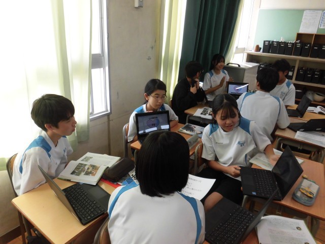 2日(木)の5時間目、2クラスに大勢の先生が集まり、道徳の授業を行いました。「まだ食べられるのに」と「平和をつなぐ」の教材を使って、ファシリテーションを行いながら、食品ロスについて考えたり、平和活動を有償化することについて考えたりしました。特にファシリテーターの人は大勢の先生たちが見守る中、グループの人たちの考えを上手に引き出すことができました。よく頑張りました!生徒の皆さんが下校した後に、先生たちは5時間目の授業について意見交換をしました。
