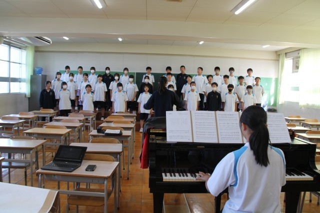 8日(水)の6限に、2年生は体育館、音楽室、教室で合唱コンサート練習を行いました。きれいな歌声が校内に響き渡っていました。本番まであと2週間、限られた練習時間ではありますが、クラス全員でこれからどんな合唱を作り上げるのか楽しみにしたいと思います。
