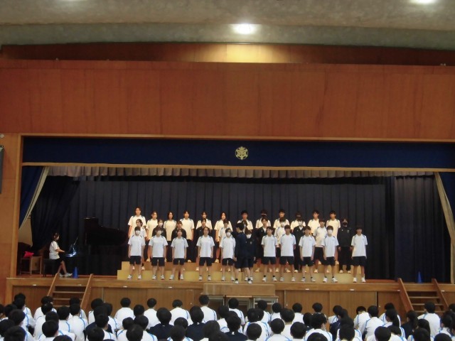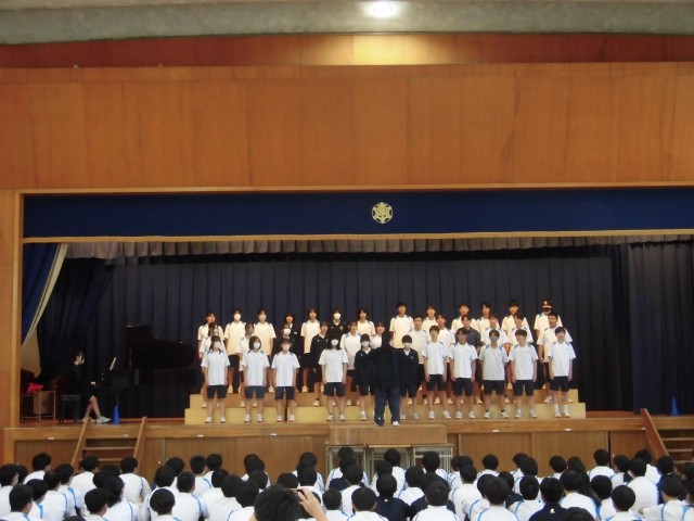 17日の6限に、3年生の合唱コンサートのリハーサルを行いました。今日まで、しっかり練習に取り組んできたことが伝わる、素晴らしい合唱でした。一人一人の歌声は「1」かもしれませんが、指揮者や伴奏者、メッセンジャーのリードのもと、「クラスのみんなのために」という気持ちを大切にして、クラスの38~40人の「1」が重なれば、それはきっと38~40よりもずっと大きな数字になります。練習は、あと1回。合唱が好きな人もそうではない人も、得意な人も苦手な人も、それぞれなりのベストを尽くし、最高の合唱をつくりあげましょう!本番、とても楽しみにしています!