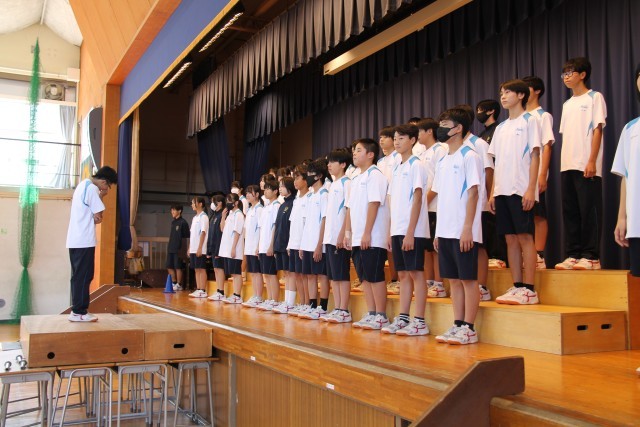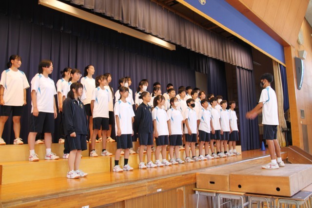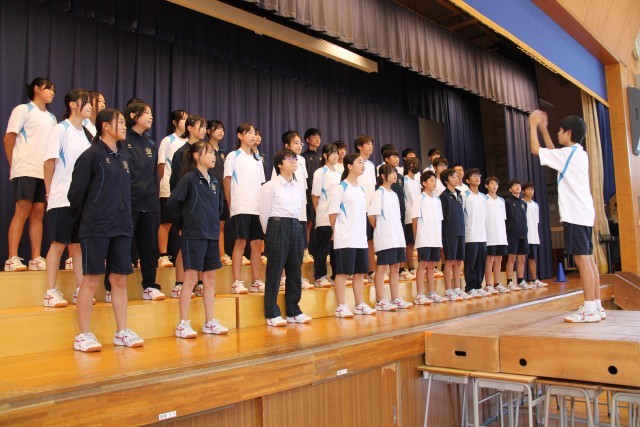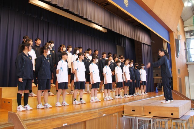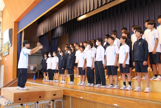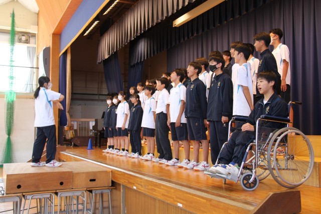17日(金)4限に、2年生は合唱コンサートのリハーサルを行いました。歌唱だけでなく、返事の仕方から登壇、降壇の姿勢まで、本番さながらの緊張感でリハーサルに臨みました。どのクラスも日頃の練習の成果がひしひしと感じられました。音楽の先生の後評では、「まだまだいつもの力が発揮できていないよ。音楽室でのあの熱唱を体育館でも再現しよう」とさらに高みを目指して奮起するよう激励を受け、その言葉を深く胸に刻みました。本番が楽しみです。