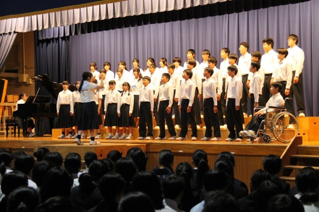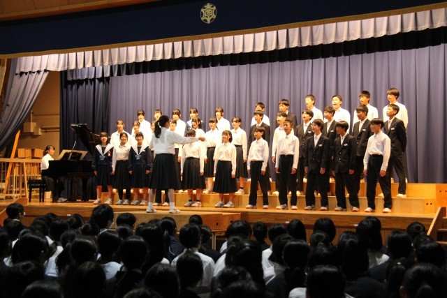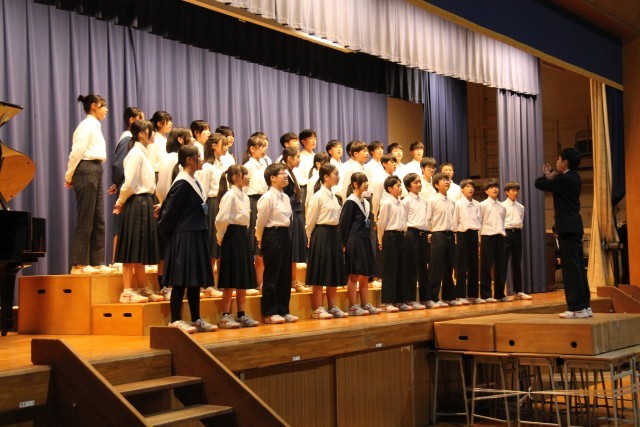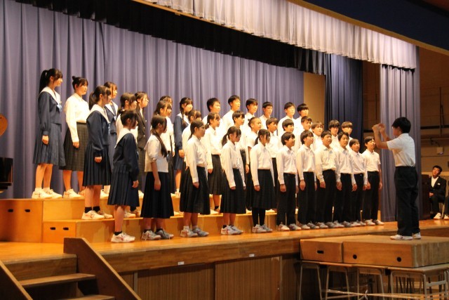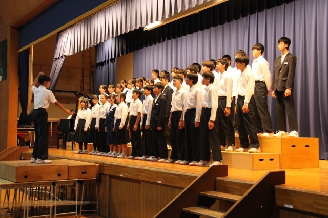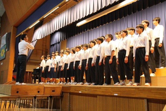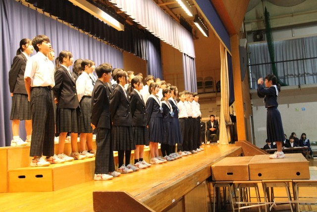 23日(木)の2年生の合唱コンサートの様子です。今回は、1年生による投票があり、そのうえ多くの保護者の方々に見守られながらの合唱ということで、昨年度とはレベルの違う緊張感が漂いました。そういった独特の空気の中でも、自分たちの積み上げてきたものへの自信と期待がひしひしと感じられ、中学2年生として大きな成長をとげるよい機会となりました。