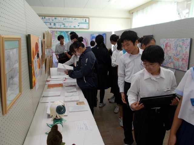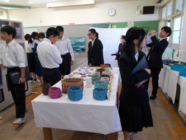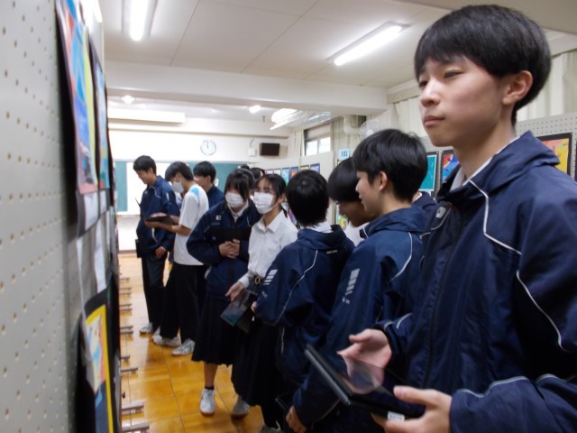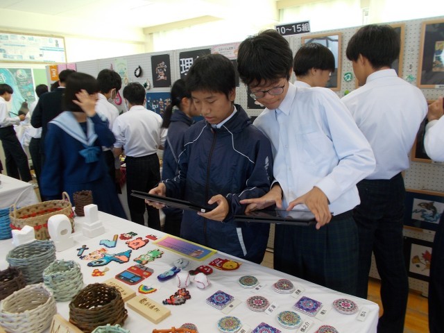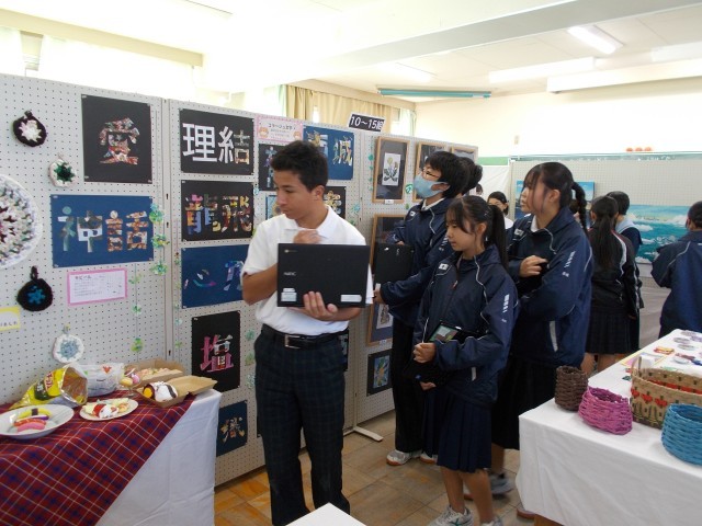 10月23日(木)のフェスティバルでは、1~3年生の作品を鑑賞する、「展示鑑賞」の時間がありました。3年生の皆さんは、「この作品は、こんなところが面白い」「この作品がもし売っていたら、買いたいくらい良い」といった感想を友達と共有しながら、鑑賞を楽しんでいました。
