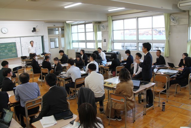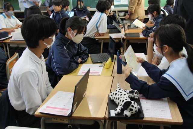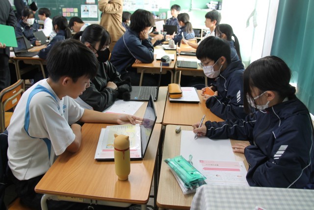 30日(木)の5限に各学年1クラスずつ、大学の先生や他校の先生をはじめとする多くの先生が見守る中で「テニス部の危機」という教材を活用して、危機を乗り越えるためにはどうしたらよいかを考えました。班での話し合いも踏まえながら、最終的に自分だったらどのようにするという結論に達したのでしょうか。