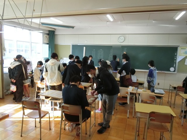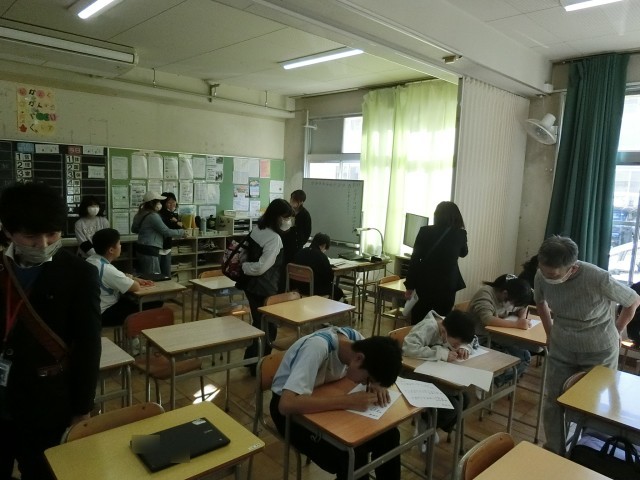 28日(金)、南城中学校ブロックの小学校と中学校の特別支援学級の児童生徒が南城中学校集まって交流会を行いました。2限は中学校の授業風景を見てもらい、小学生にも中学校の授業を体験してもらい、3限は体育館で小学生と中学生が一緒にドッジビー等を行い、交流を深めることができました。