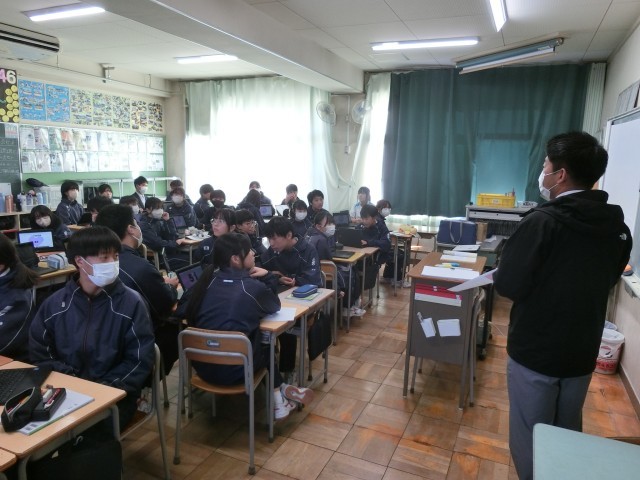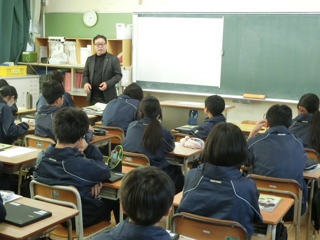 28日(金)に、2年生は外部から講師の先生を招いて道徳の授業を行った後に職業講話会を行いました。道徳の時間を通して働くことの意義について考え、職業講話会を通して教師ではない職業の方から仕事のやりがい、どんなことを意識して働いているのかなどの話を聞きました。