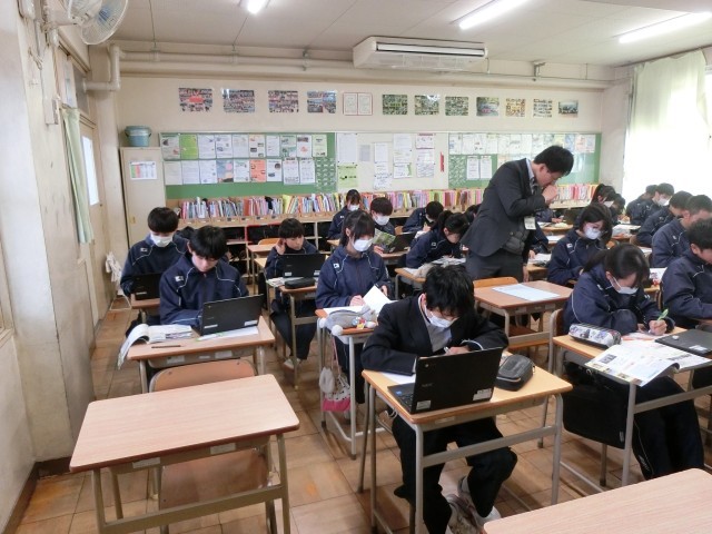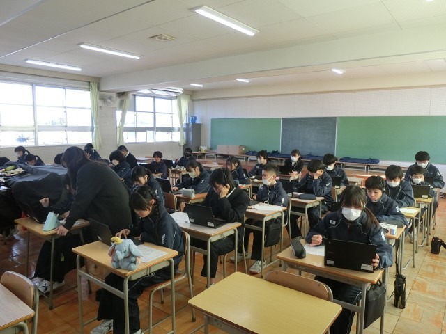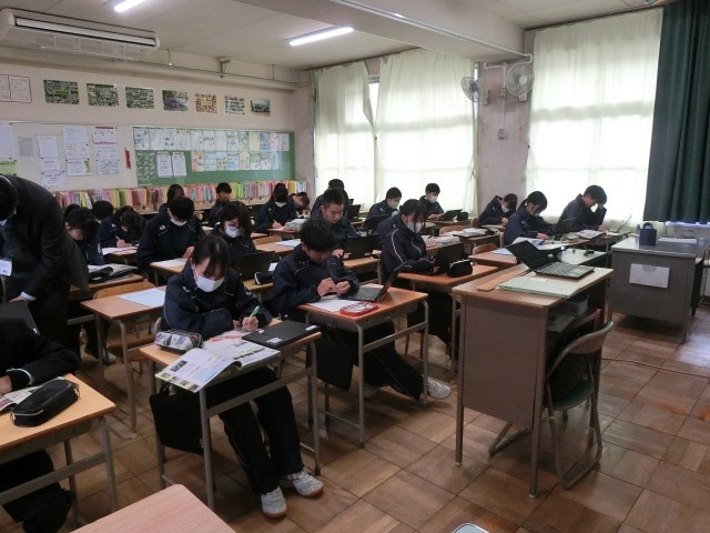 5日(金)、音楽の授業では全員が集中してタブレットを使って夢中になって曲作りをしていたり、大きくきれいな歌声で合唱曲のパート練習をしたりしていました。社会の授業では東北地方について、タブレットを活用しながら調べ学習をしていました。他にも面接の練習をしたり、実生活につながる問題演習を先生と一緒に考えたりすることもしていました。