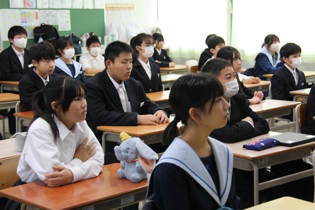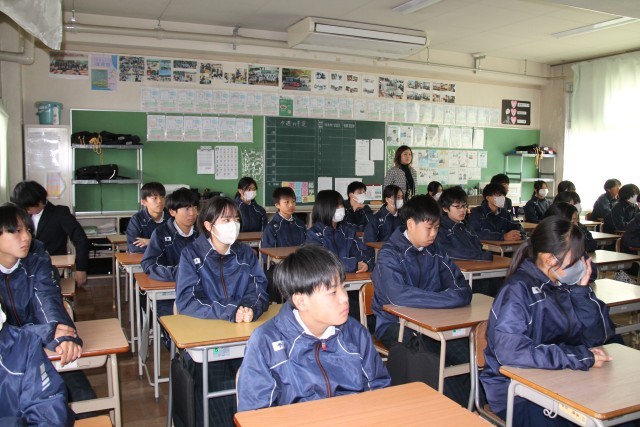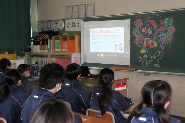 23日(火)、2学期終業式を行いました。校長式辞では「何も咲かない寒い日は下へ下へと根を伸ばせ、やがて大きな花が咲く」と校長先生自身が大切にしている言葉の紹介がありました。生徒指導の先生からは自転車の安全な乗り方をはじめとする交通安全の話や自分の行動に責任をもちましょうと冬休みの生活全般の話がありました。生徒会からは、先日の学校レクの結果発表を行いました。