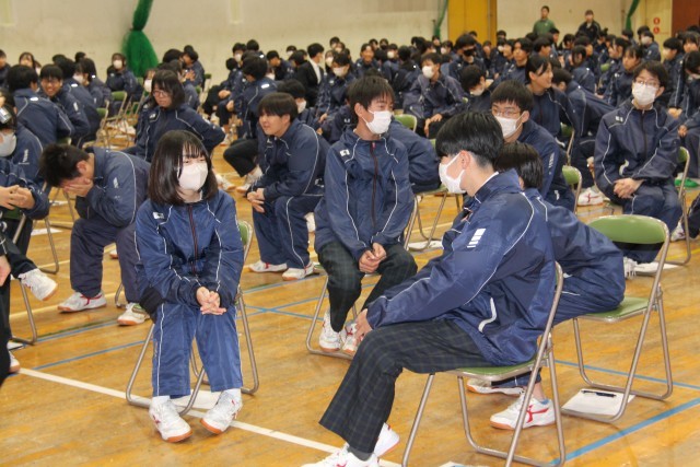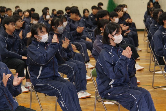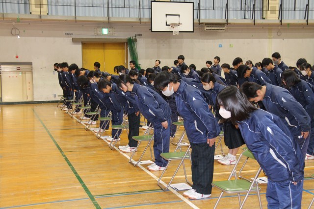 19日(月)の5限、2年生を対象にコミュニケーションマナー講座を行いました。講師の先生からは、明るく、優しく、美しい言葉遣いの使い方、おじぎの練習、椅子からの立ち方、座り方の練習など社会に出るときの必要なマナーについて教えていただきました。来年受験を迎えるにあたって、面接を受ける人もいると思います。将来社会に出るときは面接を受けることになります。人は第一印象が大切です。今のうちから時と場合に応じた言動を意識しておくとよいですね。