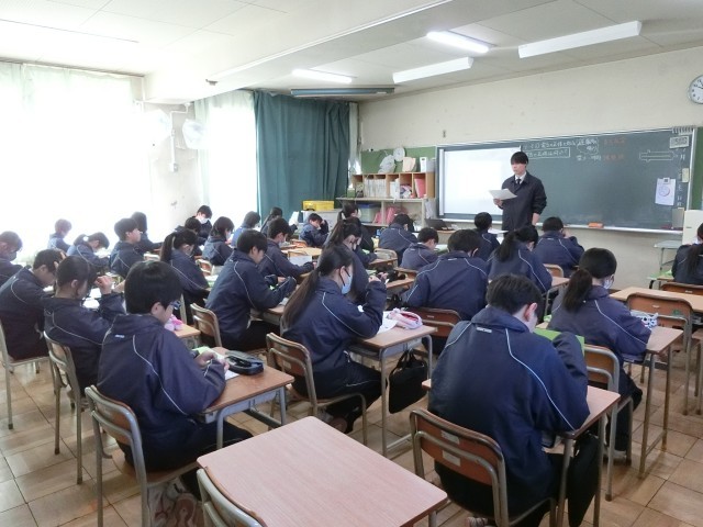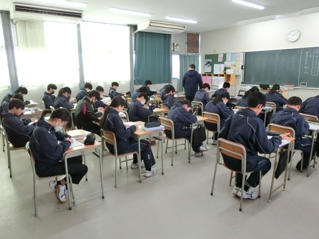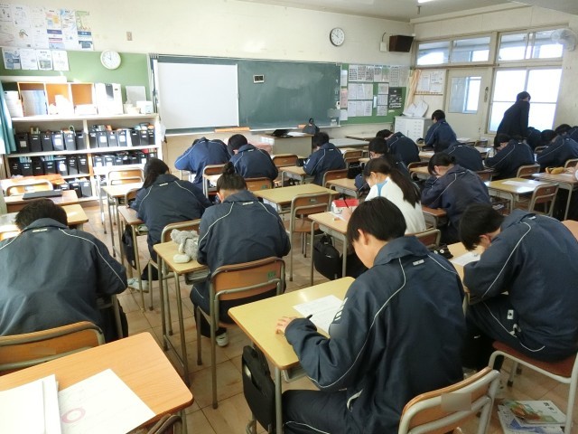 21日(水)は、3年生は私立入試の関係で人数が少なく、いつもより寂しい感じがしました。でも、明日以降の受験に向けて一生懸命に課題に取り組んでいました。国語の授業では文法などの言葉の成り立ちについて問題演習を行っていました。理科の授業ではパフォーマンス課題が返却され、飽和水蒸気量などの言葉の意味を確認しながら課題の解説が行われていました。数学の授業ではこれまでに学習したことを踏まえた応用問題を考えていました。