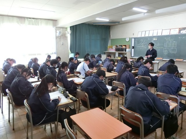 3日(火)は定期テストまで1週間になり、諸活動停止になりました。普段よりも自分の時間が多くあるので、学習に力を入れましょう。社会の授業では江戸時代末期の出来事についての説明が行われていました。理科の授業では、入試対策問題に挑戦したり、地震の仕組みについて動画をみたりしていました。給食・清掃後の授業ということもあり、疲れているなと感じる人も見られましたが、それでも一生懸命に頑張って授業を受けていました。3年生の授業に対する集中力は本当にすばらしく、さすが最上級生だなと感じました。