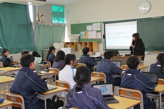 あらためて授業では、架空の事例や過去にあった事例を活用しながら、その行為や行動の善悪について考えたり、SNS上に言葉、写真、動画をアップすることのリスクについて考えたりしました。