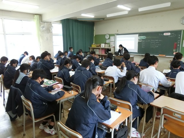 24日(金)3限に、野外学習の学年集会、音楽の授業ではオリエンテーション、特別支援学級では自立活動で学校生活におけるルールなど、英語の授業では現在完了形について行われていました。
