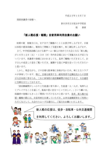 『「新人戦応援・観戦」自家用車利用自粛のお願い』のチラシを配付致しました。