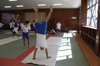 倒立を練習していました。