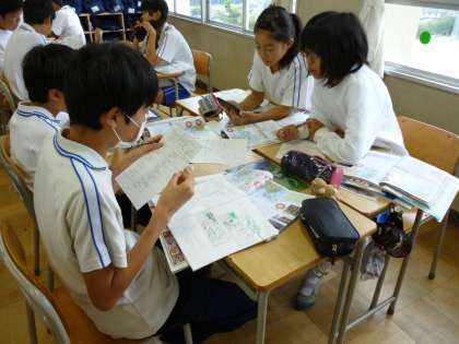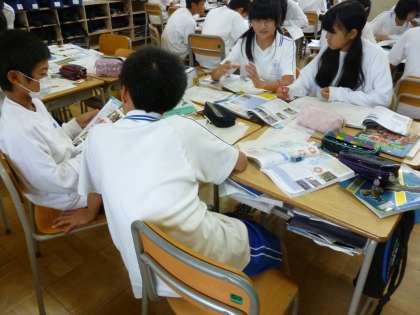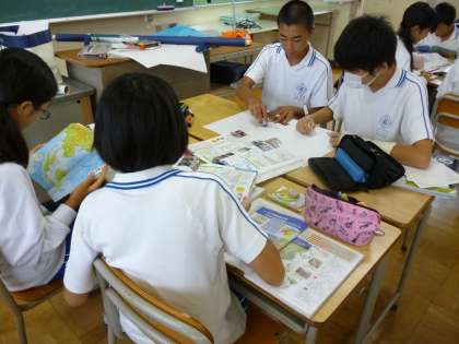 東南アジアについて、班ごとで、調べ学習をしていました。