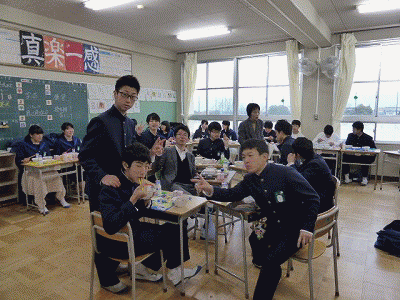 義務教育最後の給食を、みんな楽しそうに、味わっていました。