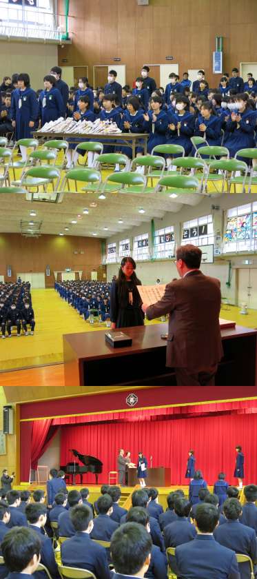 明日の卒業式に向けて、最後の全体練習を行いました。