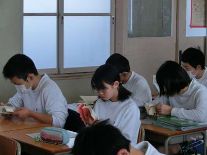 今日の1年生の朝読書の様子です。大変厚い本を読んでいる人もいました。本の面白さに気づくと、今度は読書の傾向が広がっていくと思います。また、読んだ本について友だちと情報交換するのも楽しいものです。読むのが楽しみというようになるといいですね。 ここをクリックしてください。
