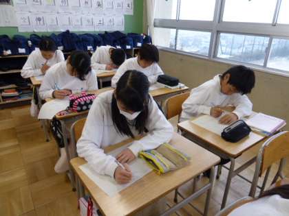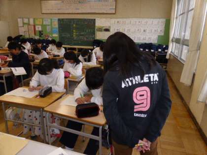 教師自作の復習プリントに、一生懸命取り組んでいました。