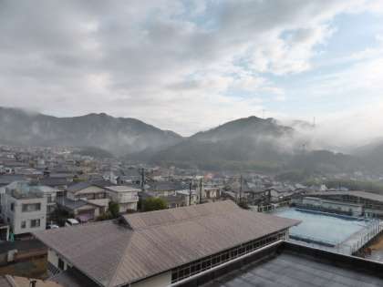 今日は、雨上がりで、山々に霧がたちこめていました。