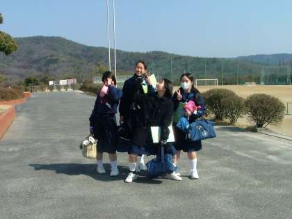 3年生下校風景です。いよいよ明日は卒業式。石尾台中学校へ通うのも,あと1日となりました。みんな晴れやかな顔で下校していきました。明日は天気もよさそうです。いい卒業式になりそうですね。