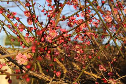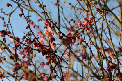 校庭の梅の花が咲いています。