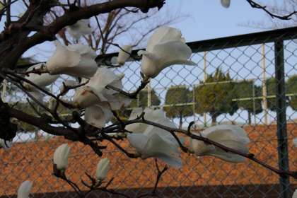 校庭の片隅で、ひっそりと咲く木蓮(モクレン)の花を撮りました。