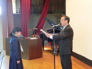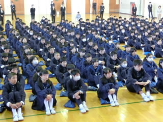 その後、1年生から意見発表があり、みんなで校歌を歌いました。
