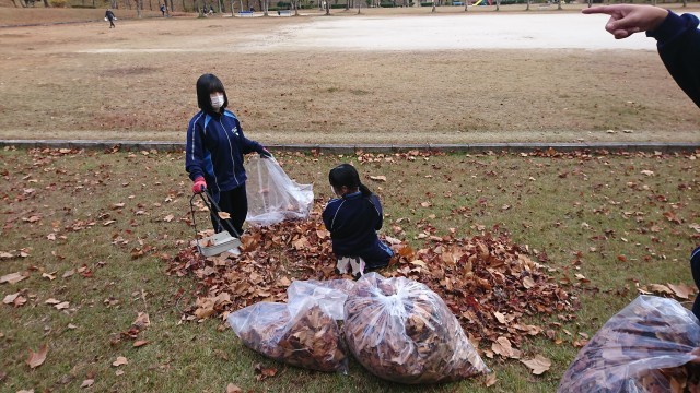 地域清掃活動で石尾公園の落ち葉拾いをしました!