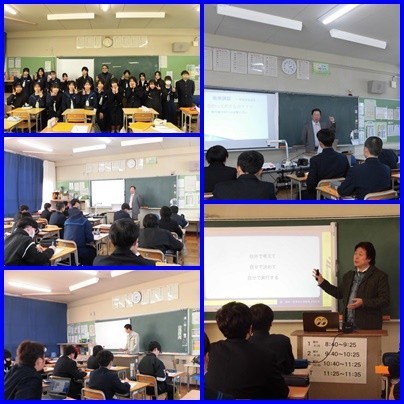 職業講話会がありました。5人の方に来校していただき、仕事の内容ややりがい、中学校生活でしておくとよいことなどをお話ししていただきました。みな、真剣に話を聞いたり質問をしたりして、積極的に参加していました。