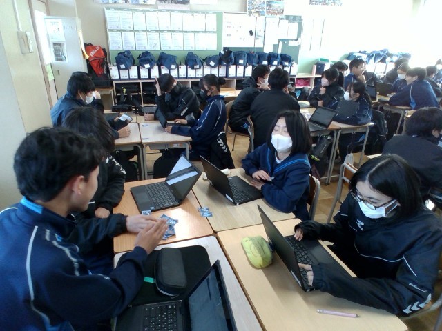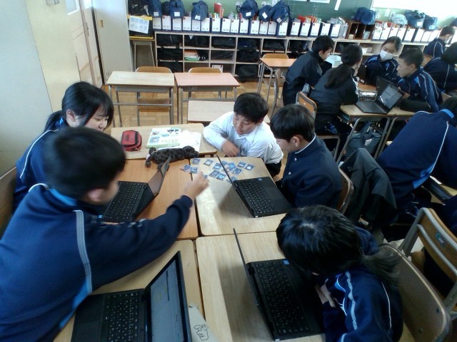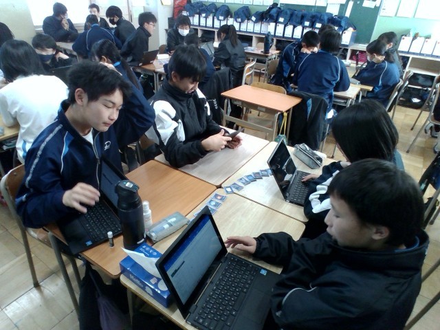 学活の時間に班のみんなで協力して一つの答えを導き出すコンセンサスゲームを行いました。お題は「NASAゲーム」で、月で宇宙船が不時着し、母船に戻るために必要な道具を決めるという内容です。どの班も頑張って答えを考えていました。