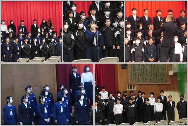 心のこもったたくさんの贈り物を在校生から受け取り、3年生からも歌でお礼の気持ちを届けました。