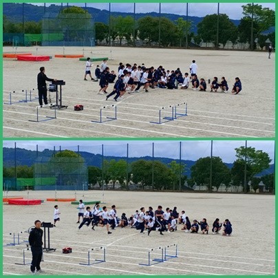 2組・3組の体育です。体力テストの持久走が行われました。
