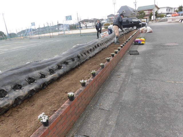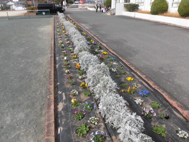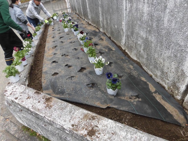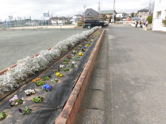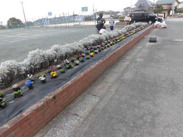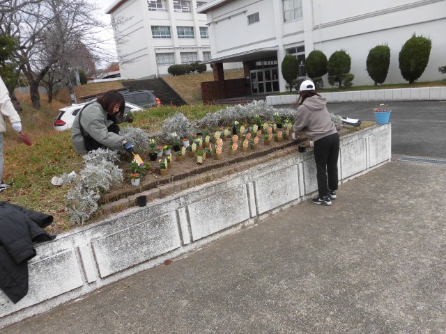 12月13日土曜日、花ボランティアとおやじの会の皆さんで校内の花壇の植え替えを行いました。どのように花を配置すると良いか試行錯誤しながら、和気あいあいと植え替えを進めている様子です。花ボランティアとおやじの会の皆さん、ありがとうございました。