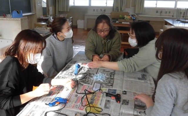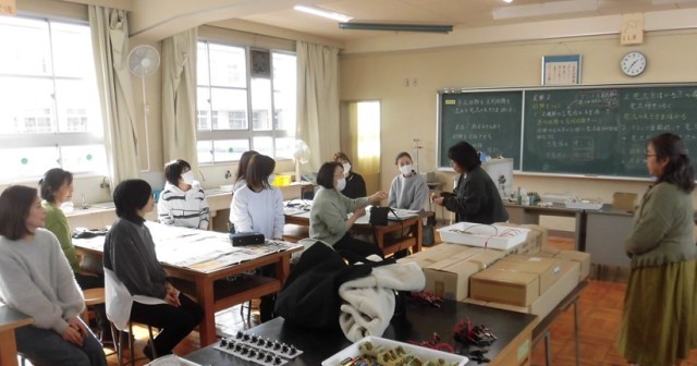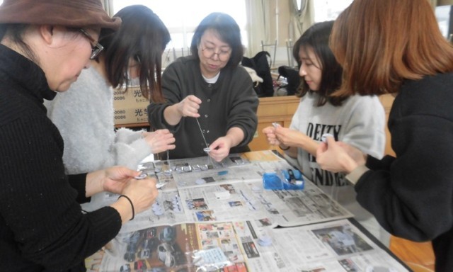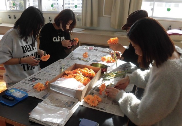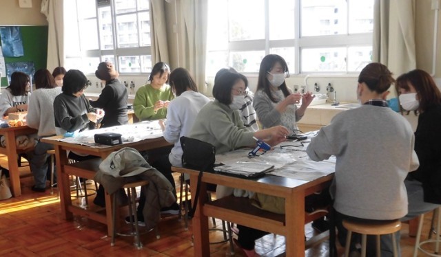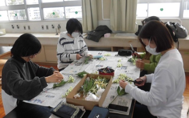 PTA研修部が中心となって、参加された保護者の方々と卒業生の胸元を飾るコサージュづくりを行いました。今回は、コサージュの基となる部分をつくりました。次回はコサージュを完成させる予定です。参加された皆様、ありがとうございました。