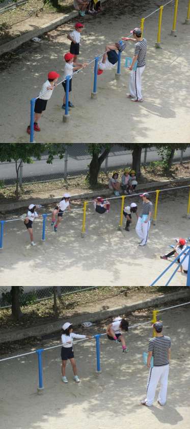 体育:鉄棒「足かけ前回り」